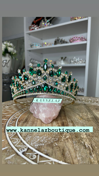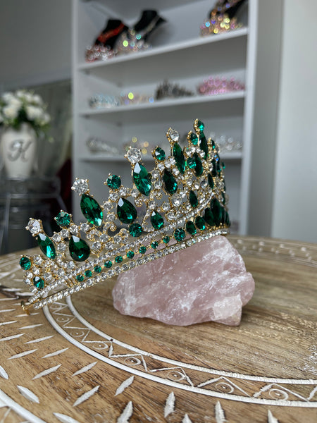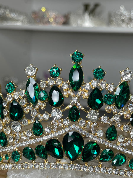 Luxury Emerald Green Crown - Tiara Jewelry Set