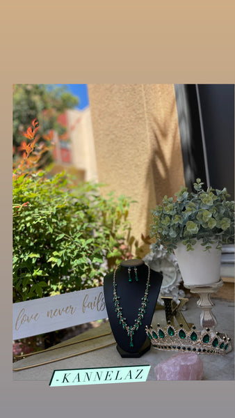 Luxury Crown-Tiara Gold Green Jewelry Set
